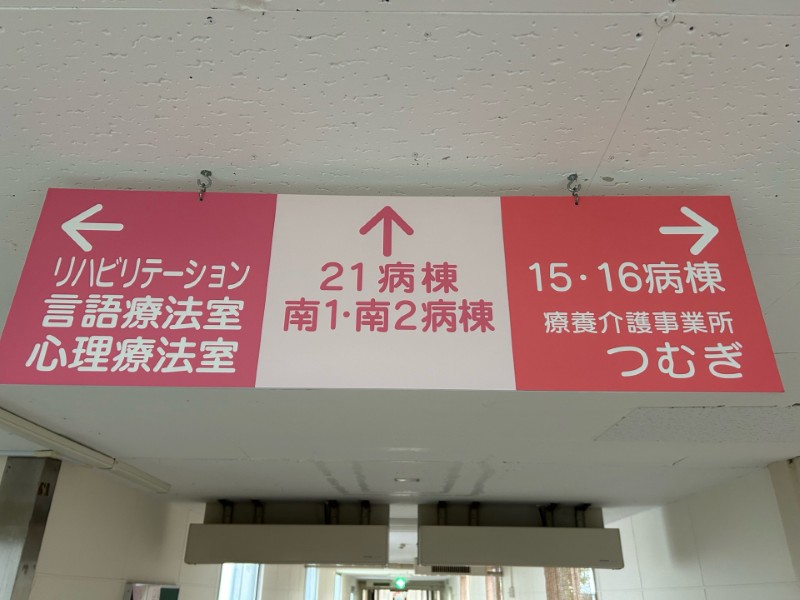 この看板が見えたら左に曲がった突き当りに理学療法室があります!