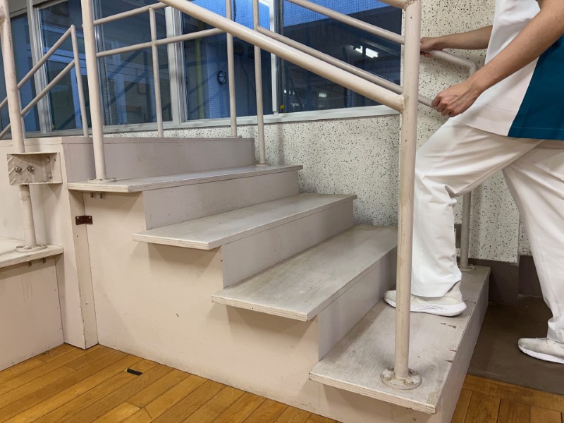 家屋にある階段の高さに合わせることや運動機能の向上を目的とした練習のために段差の高さを変えることができます。当院では10cm、15cm、20cm、40cmの段差となっています。
